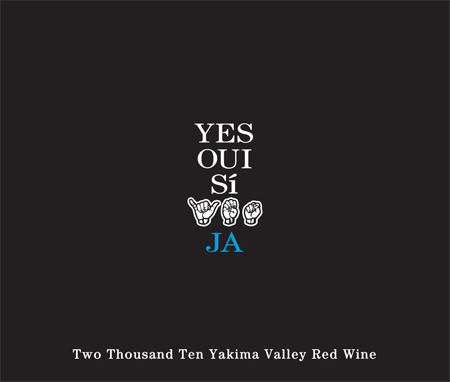 We are now referring to this wine as just the YES Wine. It's getting too confusing with all the names and symbols we will be using. This is the 5th year and the label reads "JA" which is yes in Swedish/Dutch/German/Danish etc., The wine is completely produced by our winery. It is our little daily-drinker which everybody will love (55% Merlot 33% Cab 12% Cab Franc). Is it Tuesday? Yes it is, perfect, yummy and easy. 221 cases produced.